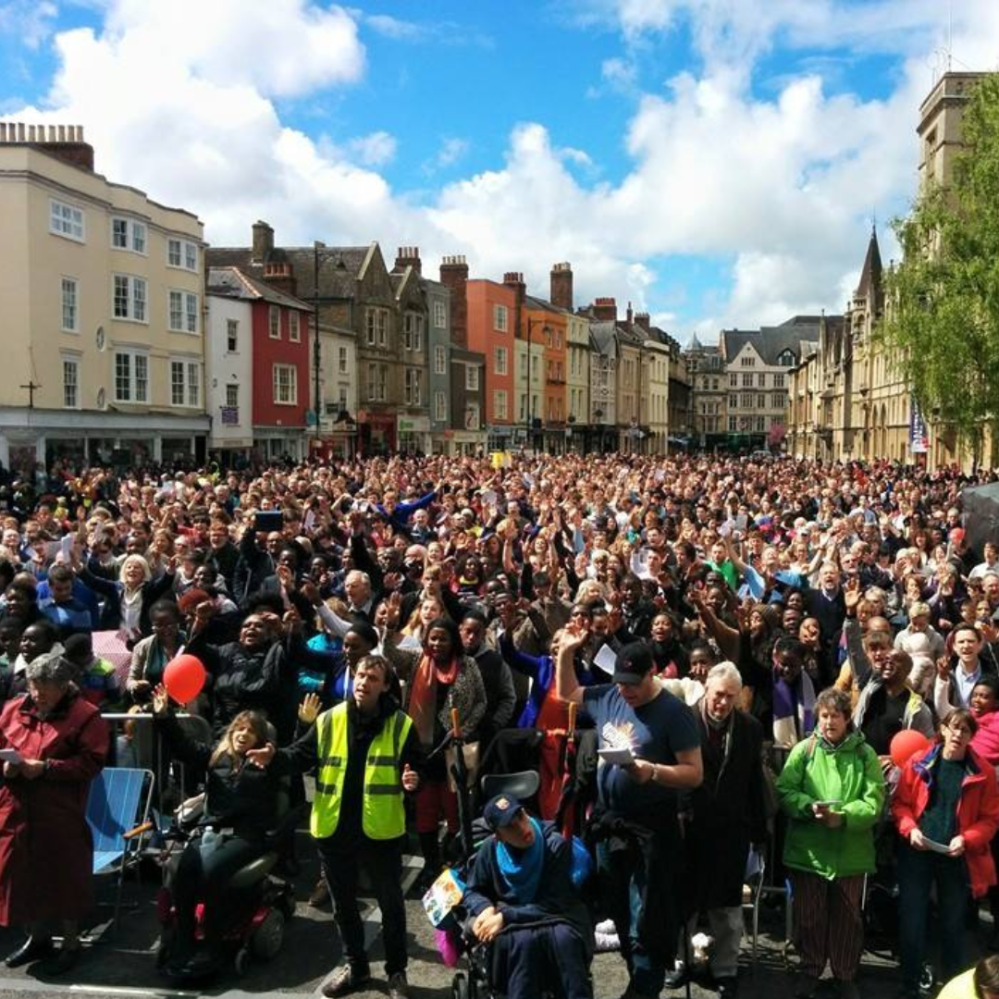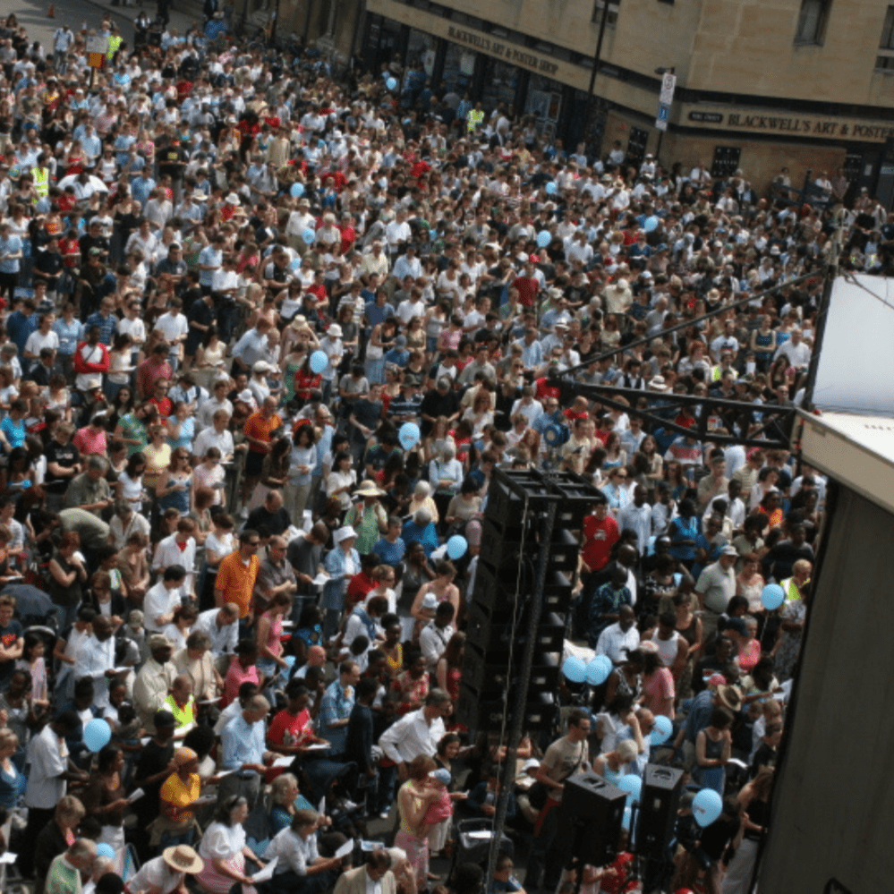 In 2006, Charlie Cleverly, Rector of St Aldates, invited all churches in the city to meet in Broad Street one Sunday in June, to declare God’s praises, to hear the word of God preached and to pray for the peace of the city. Over 30 churches cancelled their usual worship services and 4,000 people joined together. This event was called ‘Love Oxford.’